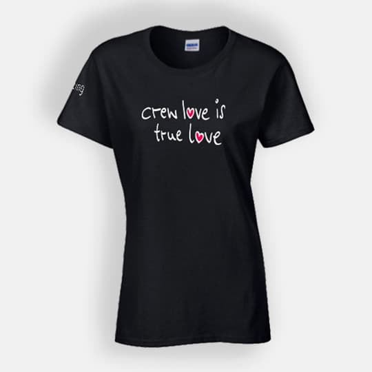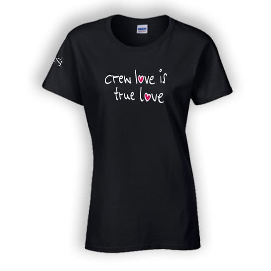 Produkt: „Mantis Essential T“ T-Shirt, Schwarz mit teamazing Logo und Crew Love is True Love Design / Damen