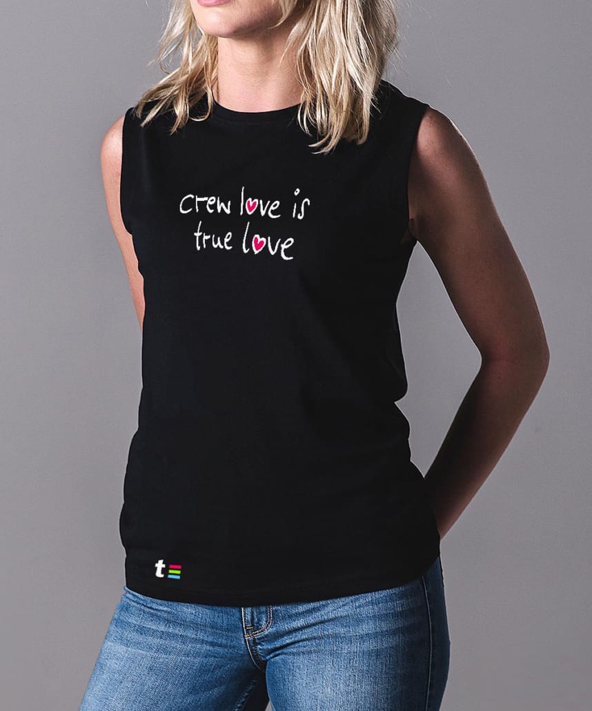 Mit deiner Crew, Schulter an Schulter. Ohne Ärmel muss es wohl Freundschaft sein. Mit dem Tank Shirt „Crew Love Is True Love“ bist du bestens für die Zukunft vorbereitet. Denn nur mit der globalen Zusammenarbeit können wir die Klimaerwärmung stoppen. Bis dahin empfiehlt es sich, ärmellos zu bleiben.