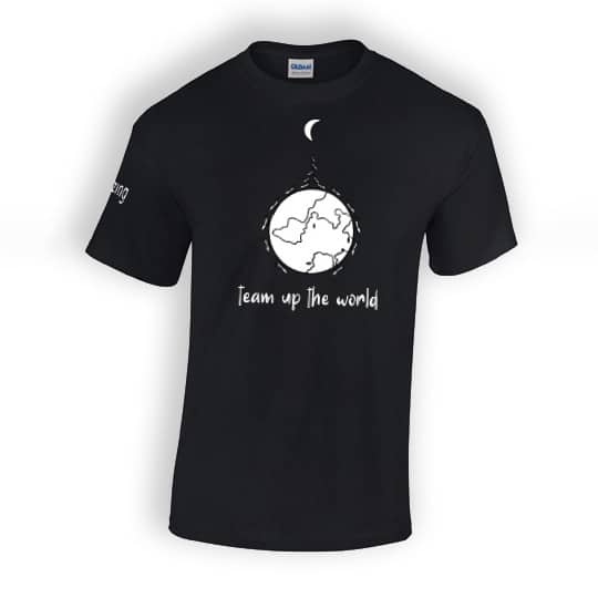 Produkt: „Mantis Essential T“ T-Shirt, Schwarz mit teamazing Logo und Team Up The World Design / Herren